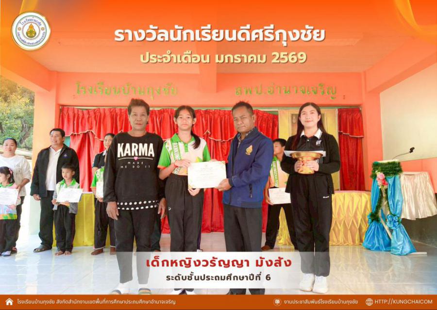 นักเรียนดีศรีกุงชัย ประจำเดือนมกราคม 2569