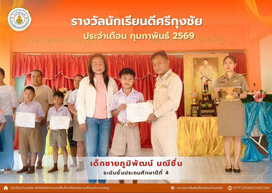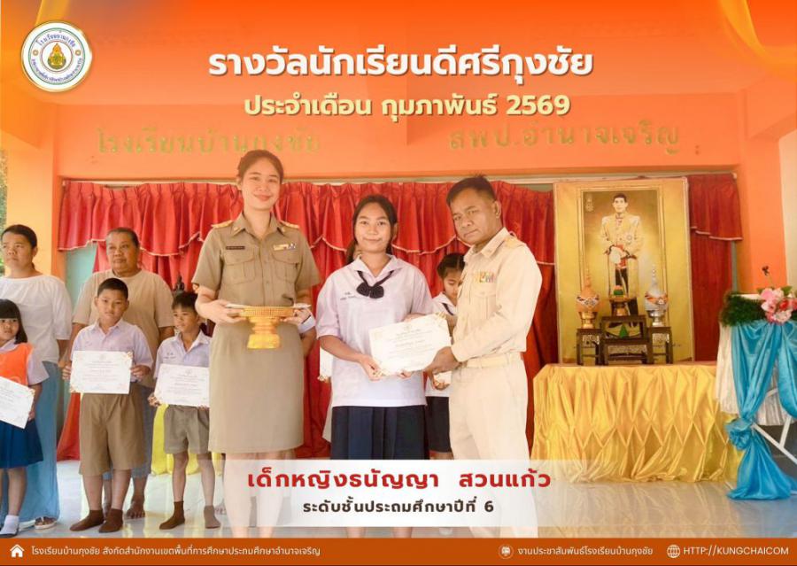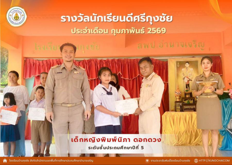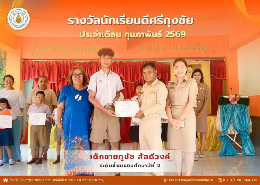 นักเรียนดีศรีกุงชัย ประจำเดือนกุมภาพันธ์ 2569