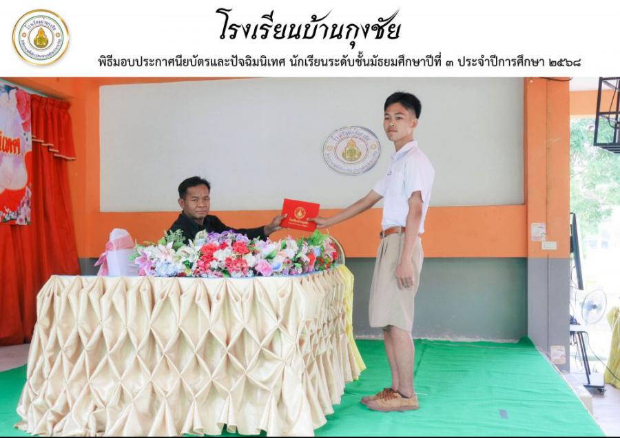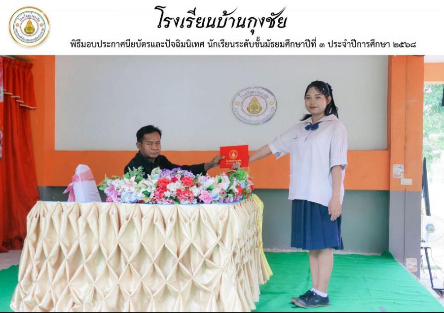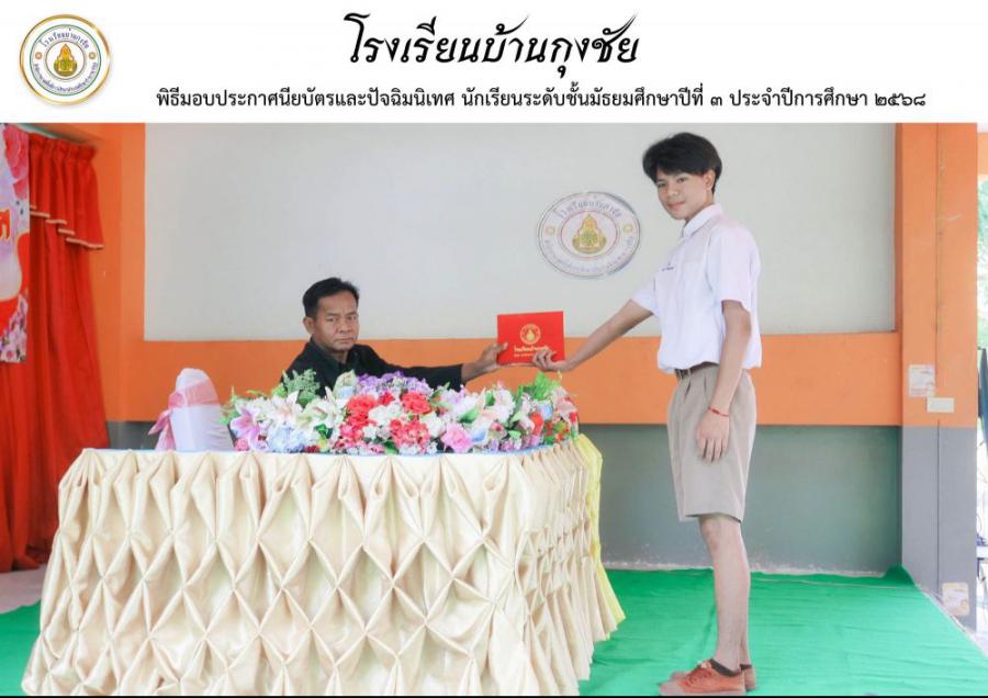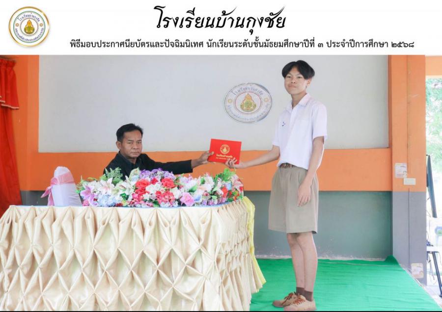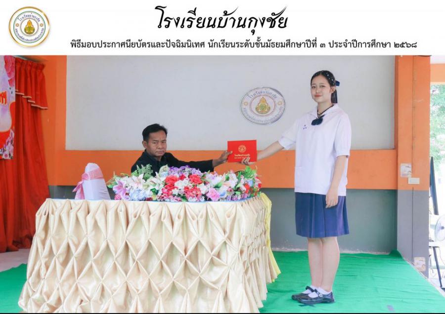 ขอแสดงความยินดีกับผู้สำเร็จการศึกษานักเรียนระดับชั้นมัธยมศึกษาปีที่ 3 ประจำปีการศึกษา 2568 โรงเรียนบ้านกุงชัย S:0