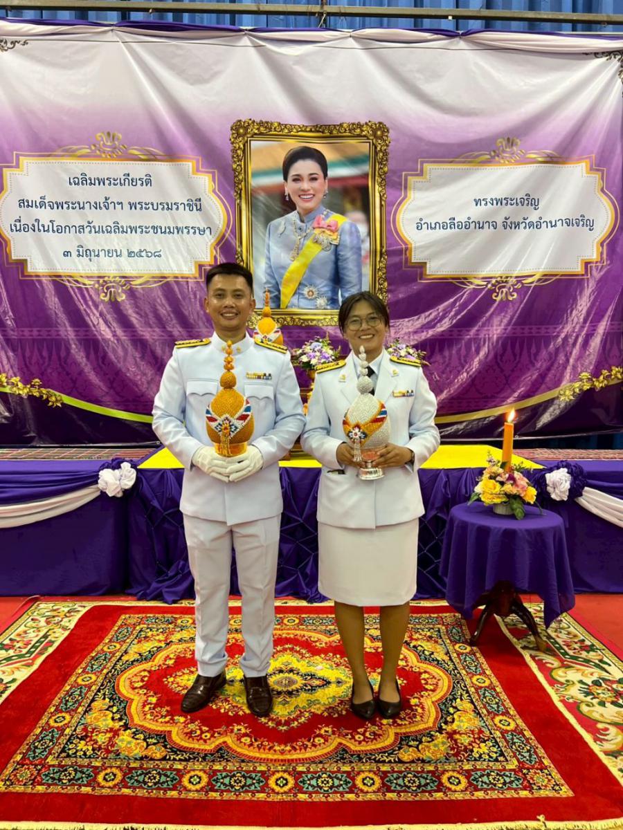 โรงเรียนบ้านกุงชัยนำโดย นายไพโรจน์ ใจดี ผู้อำนวยการโรงเรียนบ้านกุงชัย พร้อมทั้งคณะครูและบุคลากรทางการศึกษา ร่วมพิธีถวายเครื่องราชสักการะ วางพานพุ่ม และพิธีถวายพระพรชัยมงคลเนื่องในโอกาสวันเฉลิมพระชนมพรรษา สมเด็จพระนางเจ้าสุทิดา พัชรสุธาพิมลลักษณ พระบรมราชินี ประจำปีพุทธศักราช 2568 โดยมีนายณัฏฐ์กรณ์ หน่อนิล นายอำเภอลืออำนาจ เป็นประธานในพิธีถวายเครื่องราชสักการะ วางพานพุ่ม พร้อมนำกล่าวคำถวายราชสดุดีเฉลิมพระเกียรติ และผู้นำร่วมพิธีจุดเทียนถวานพระพรชัยมงคล ณ หอประชุมอำเภอลืออำนาจ จังหวัดอำนาจเจริญ S:0
