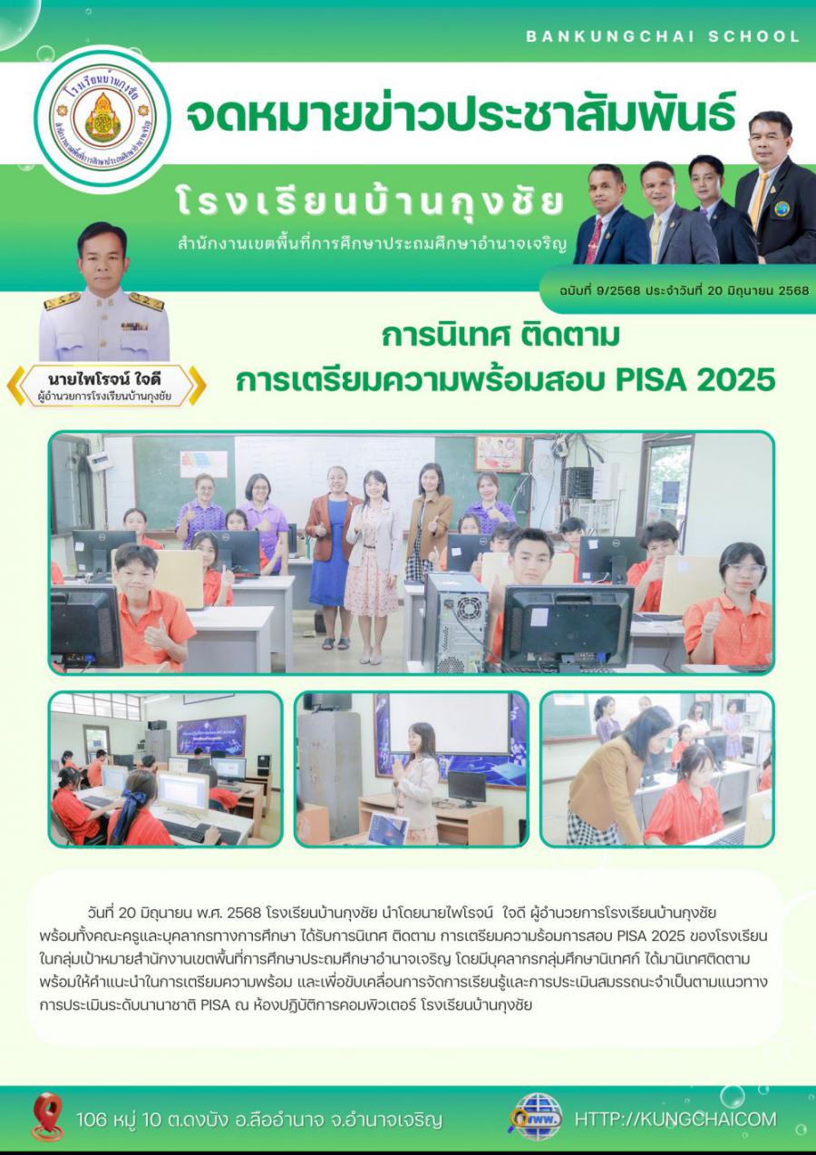 โรงเรียนบ้านกุงชัยนำโดยนายไพโรจน์ ใจดี ผู้อำนวยการโรงเรียนบ้านกุงชัย พร้อมทั้งคณะครูและบุคลากรทางการศึกษา ได้รับการนิเทศ ติดตาม การเตรียมความร้อมการสอบ PISA 2025 ของโรงเรียนในกลุ่มเป้าหมายสำนักงานเขตพื้นที่การศึกษาประถมศึกษาอำนาจเจริญ โดยมีบุคลากรกลุ่มศึกษานิเทศก์ ได้มานิเทศติดตาม พร้อมให้คำแนะนำในการเตรียมความพร้อม และเพื่อขับเคลื่อนการจัดการเรียนรู้และการประเมินสมรรถนะจำเป็นตามแนวทางการประเมินระดับนานาชาติ PISA ณ ห้องปฏิบัติการคอมพิวเตอร์ โรงเรียนบ้านกุงชัย S:0