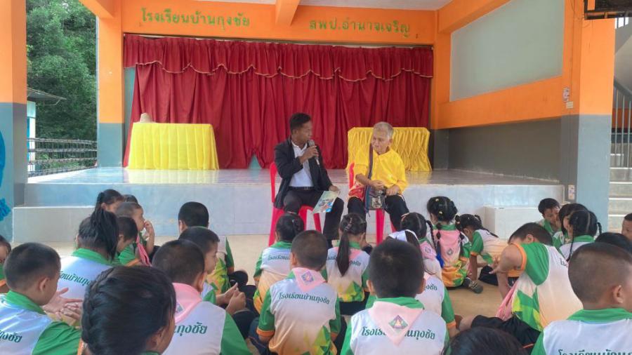 โรงเรียนบ้านกุงชัยนำโดยนายไพโรจน์ ใจดี ผู้อำนวยการโรงเรียนบ้านกุงชัย พร้อมทั้งคณะครูและบุคลากรทางการศึกษา ได้ร่วมกิจกรรมพัฒนาผู้เรียนส่งเสริมทักษะสมองเพื่อจัดการชีวิตสู่ความสำเร็จ (EF) ด้วย นิทานและภูมิปัญญาท้องถิ่น โดยมีคุณพ่อวันชัย คุรุพันธุ์ เป็นวิทยากรในการมอบความรู้ด้านภูมิปัญญาท้องถิ่นให้แก่นักเรียนโรงเรียนบ้านกุงชัย เพื่อส่งเสริมให้ผู้เรียนตระหนักถึงคุณค่าและภูมิปัญญาท้องถิ่น ผ่านการเล่านิทานพื้นบ้านที่สอดแทรกคติธรรมและข้อคิดในการดำเนินชีวิต อันจะช่วยพัฒนาทักษะการคิดวิเคราะห์ ตลอดจนปลูกฝังคุณธรรมและค่านิยมที่เหมาะสม พร้อมทั้งอนุรักษ์วัฒนธรรมท้องถิ่นให้คงอยู่ต่อไป S:0