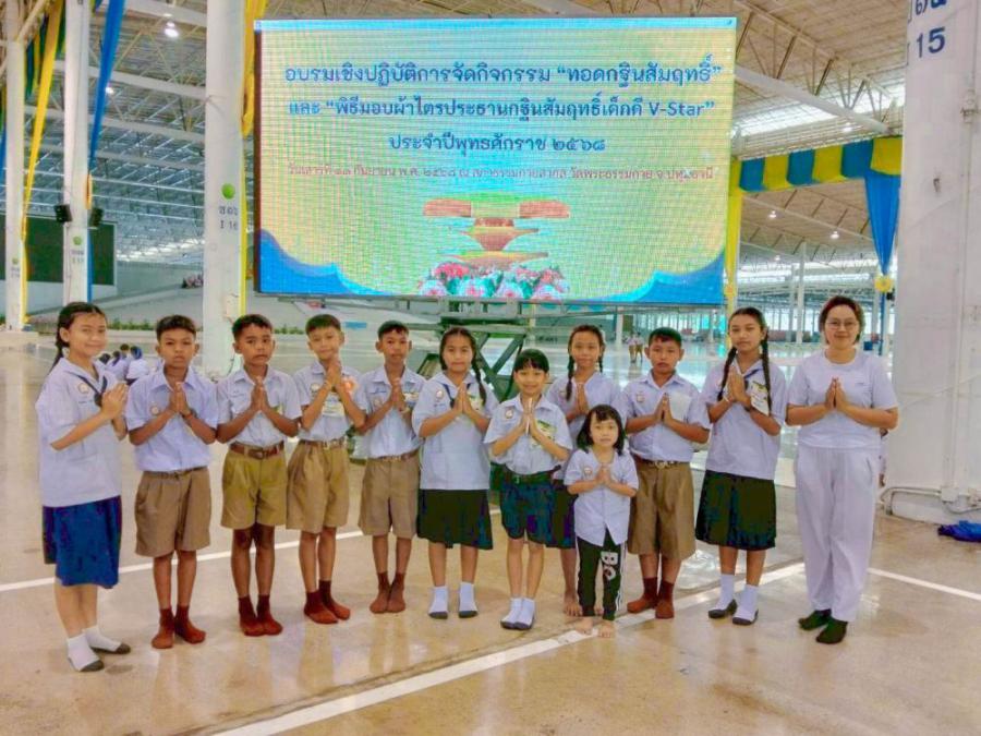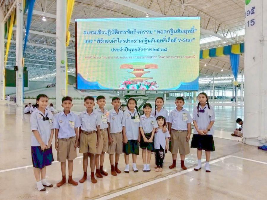 โรงเรียนบ้านกุงชัยนำโดยนายไพโรจน์ ใจดี ผู้อำนวยการโรงเรียนบ้านกุงชัย พร้อมทั้งตัวแทนคณะครู และนักเรียนจากโรงเรียนบ้านกุงชัยได้เดินทางไปเข้าร่วมกิจกรรมอันเป็นมงคลยิ่งใน "มหกรรมรวมพลังเด็กดี V-Star ประจำปี 2568" ณ สภาธรรมกายสากล วัดพระธรรมกาย จังหวัดปทุมธานี ในงานนี้ นักเรียนของเราได้เข้าร่วม พิธีทอดกฐินสัมฤทธิ์เด็กดี V-Star และ พิธีมอบผ้าไตรประธานกฐินสัมฤทธิ์ โดยมีโอกาสร่วมทำบุญทอดกฐินอันยิ่งใหญ่ ซึ่งเป็นประเพณีสำคัญทางพุทธศาสนาที่สืบทอดกันมาอย่างยาวนาน การเข้าร่วมงานครั้งนี้ยังเป็นโอกาสอันดีที่นักเรียนจะได้เรียนรู้และซึมซับหลักธรรมคำสอน รวมถึงปลูกฝังคุณธรรมและจริยธรรมให้เติบโตเป็นเยาวชนคนเก่งและคนดีของสังคมต่อไป S:0