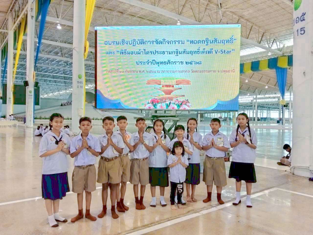 โรงเรียนบ้านกุงชัยนำโดยนายไพโรจน์ ใจดี ผู้อำนวยการโรงเรียนบ้านกุงชัย พร้อมทั้งตัวแทนคณะครู และนักเรียนจากโรงเรียนบ้านกุงชัยได้เดินทางไปเข้าร่วมกิจกรรมอันเป็นมงคลยิ่งใน "มหกรรมรวมพลังเด็กดี V-Star ประจำปี 2568" ณ สภาธรรมกายสากล วัดพระธรรมกาย จังหวัดปทุมธานี ในงานนี้ นักเรียนของเราได้เข้าร่วม พิธีทอดกฐินสัมฤทธิ์เด็กดี V-Star และ พิธีมอบผ้าไตรประธานกฐินสัมฤทธิ์ โดยมีโอกาสร่วมทำบุญทอดกฐินอันยิ่งใหญ่ ซึ่งเป็นประเพณีสำคัญทางพุทธศาสนาที่สืบทอดกันมาอย่างยาวนาน การเข้าร่วมงานครั้งนี้ยังเป็นโอกาสอันดีที่นักเรียนจะได้เรียนรู้และซึมซับหลักธรรมคำสอน รวมถึงปลูกฝังคุณธรรมและจริยธรรมให้เติบโตเป็นเยาวชนคนเก่งและคนดีของสังคมต่อไป